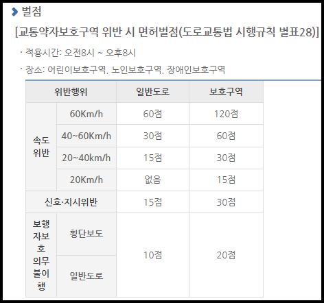 살다 보면 누구나 실수를 합니다. 특히 운전할 때요. 저도 저번 달에 실수로 신호위반을 범하고 말았는데요. 만약 어린이 보호구역에서 신호위반 단속에 걸렸다면 벌점 30점을 받았습니다. 여기에 보후구역에서 20km/h 속도위반까지 했다면 벌점 15점이 주어집니다. 신호위반과 속도위반 2번만 단속에 걸려도 벌점 40점 이상으로 바로 면허정지가 들어갑니다.